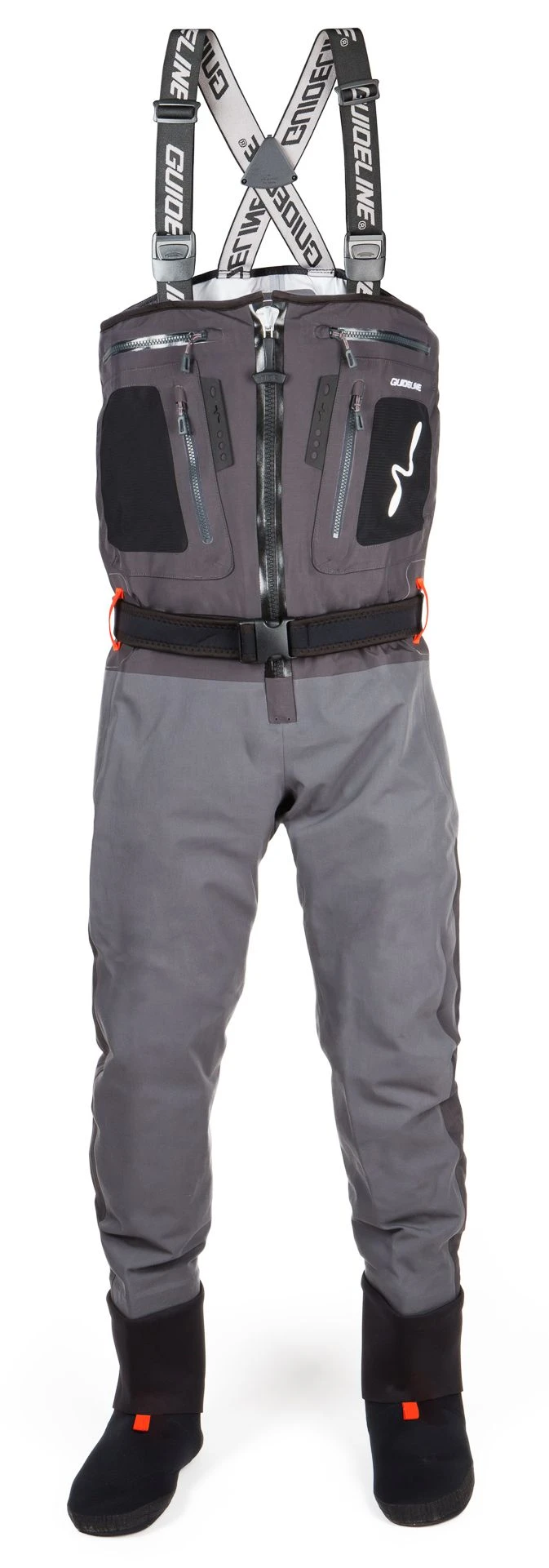 Guideline Alta Sonic TiZip -kahluuhousuissa on edessä kaksi isoa taskua perhorasioille, kaksi verkkotaskua esimerkiksi perukemateriaaleille yms. tarvikkeille, sekä lukuisia kiinnikkeitä esimerkiksi jojoille ja pihdeille. 5mm paksusta neopreenistä valmistettu vyö on mukava päällä ja helppo säätää sopivaksi. Fleecevuoratut kädenlämmitintaskut takaavat mukavuuden kylmällä kelillä kalastaessa ja pitävät kalastusfiilistä korkealla. Selän puolella on D-lenkki haavin ripustamista varten ja neopreenisissa sorasuojissa on koukku kenkäkiinnitykseen.
